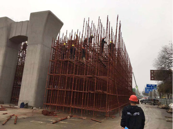本項(xiàng)目全長(zhǎng)1204.559m,其中橋梁全長(zhǎng)684m,上跨武陵山大道節(jié)點(diǎn)274m,(4跨:55m+82m+82m+55m),為變高度全鋼箱梁;上跨天崇路節(jié)點(diǎn)橋梁110m(3跨:30m+50m+30m),為變高度預(yù)應(yīng)力混凝土連續(xù)梁;西側(cè)引橋長(zhǎng)300m(10跨:10×30m),為等高度預(yù)應(yīng)力混凝土連續(xù)梁。子午橫斷面為50m,橋梁橫斷面為17.5m,該道路為城市主干道,雙向8車(chē)道,設(shè)計(jì)車(chē)速50km/h,橋梁使用年限100年,車(chē)行道采用瀝青混凝土路面,設(shè)計(jì)合理使用年限15年。